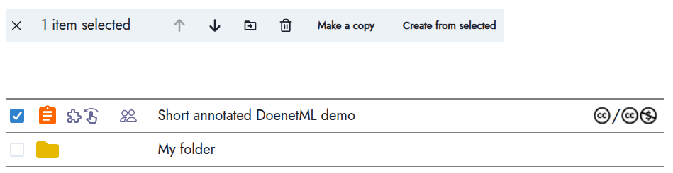 Instead, if you select the box to the left of an item, a toolbar at the top will appear, allowing you to move, delete, copy, or create from the selection. (Most options are currently available only if you select one item.)